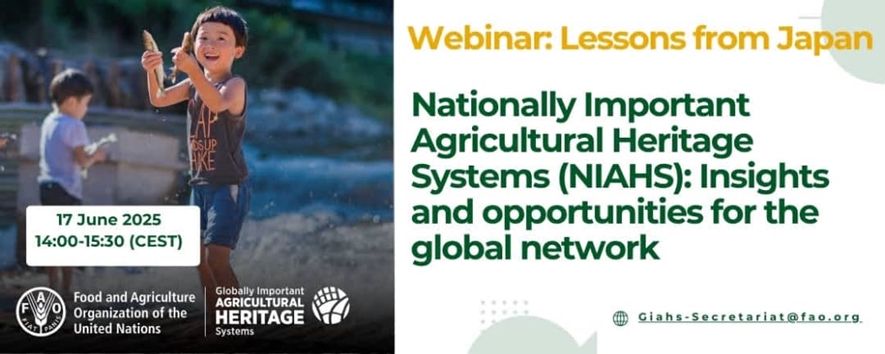 وبینار "درس‌هایی از نظام‌های میراثی کشاورزی مهم ملی ژاپن (NIAHS): بینش‌ها و فرصت‌ها برای شبکه جهانی" در روز 27 خردادماه 1404 به وقت ایران برگزار خواهد شد.