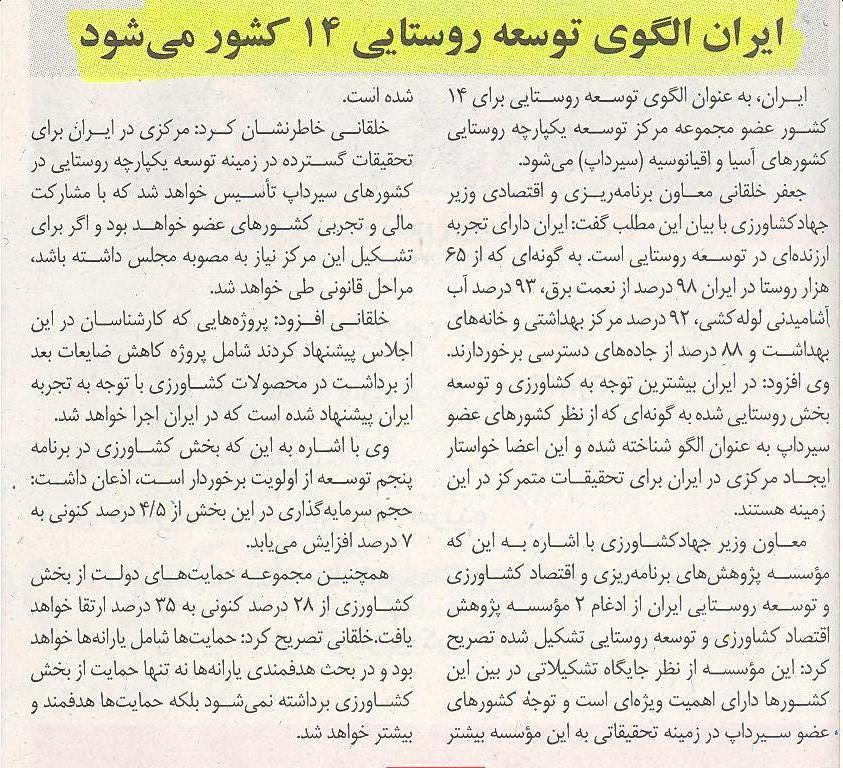 ايران الگوي توسعه روستايي 14 كشور مي شود