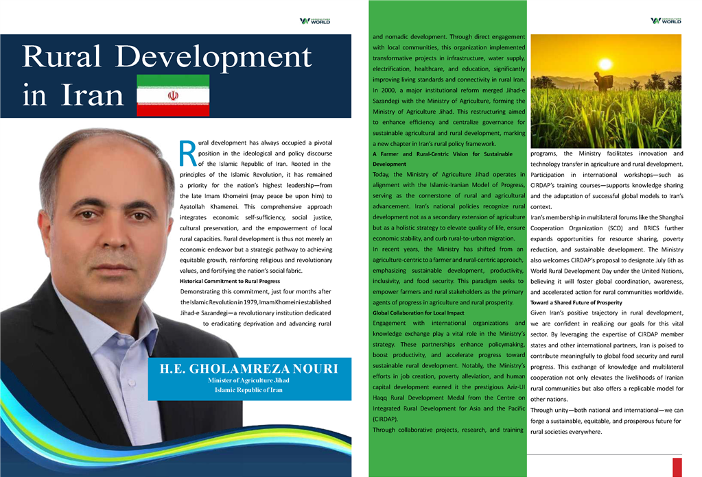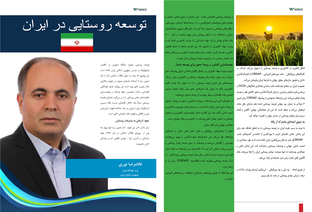 درج پیام وزیر محترم جهادکشاورزی و رئیس موسسه پژوهش‌ها در ویژه‌نامه مجله معتبر دنیای کشاورزی توسط (CIRDAP) به مناسبت روز جهانی توسعه روستایی (۶ جولای) و ۴۶امین سالروز تاسیس سیرداپ
