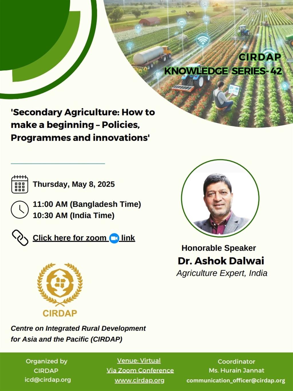 موسسه پژوهش‌های برنامه‌ریزی، اقتصادکشاورزی و توسعه روستایی، موسسه پژوهشی رابط با مرکز توسعه روستایی یکپارچه برای آسیا و اقیانوسیه CIRDAP دعوت به وبینار علمی مجازی تحت عنوان "کشاورزی ثانویه: چگونه آغاز کنیم - سیاست‌ها، برنامه‌ها و نوآوری‌ها" می‌نماید.