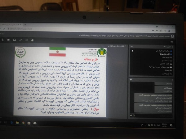 کارگاه پژوهشی ارائه دستاوردهای حاصل از انجام طرح پژوهشی با عنوان «آثار و پیامدهای ویروس کرونا و بیماری کووید 19 بر بخش کشاورزی»
