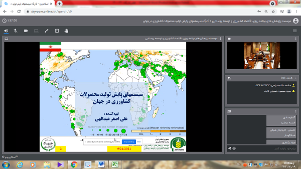 کارگاه پژوهشی ارائه دستاوردهای حاصل از انجام طرح پژوهشی با عنوان « « سیستم های پایش تولید محصولات کشاورزی در جهان » با ارائه جناب آقای مهندس علی اصغر عبدالهی پژوهشگر «گروه پژوهشی فناوری های اطلاعات و ارتباطات کشاورزی و روستایی» موسسه پژوهش‏های برنامه‏ریزی، اقتصاد کشاورزی و توسعه‌روستایی در تاریخ 30 شهریور 1400 از ساعت 9 الی 11 و با حضور جمعی از همکاران موسسه و مدیران و کارشناسان دستگاه‏ های مرتبط وزارت جهادکشاورزی در سطح صف و ستاد به صورت حضوری و مجازی توسط واحد آموزش موسسه برگزار شد.