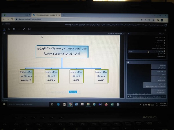 نشست علمی ارائه دستاوردهای حاصل از شرکت در دوره‌ بین‌المللی با عنوان «تبدیل ضایعات به ثروت: پس از برداشت محصول تا بازار مصرف» با ارائه جناب آقای دکتر محمدرضا نقاش زاده  کارشناس محترم زراعت و مروج کشاورزی سازمان جهاد کشاورزی استان لرستان در تاریخ 10 آذر ماه 1399 از ساعت 9 الی 11 و با حضور جمعی از پژوهشگران موسسه و پژوهشگران و کارشناسان دستگاه‏ های مرتبط وزارت جهادکشاورزی به صورت مجازی در موسسه برگزار شد. این نشست حاصل تجربه شرکت در یک دوره آموزشی با همین عنوان در اسفندماه سال 1397 بود که بطور مشترک توسط «مرکز توسعه یکپارچه روستایی آسیا و اقیانوسیه (CIRDAP)» و «موسسه ملی توسعه روستایی و پانچایاتی راج هندوستان (NIRD&PR)» به مدت 10 روز در شهر «هانوی» کشور ویتنام برگزار شد. در این دوره نمایندگانی از کشورهای عضو سیرداپ شامل ایران، هندوستان، نپال، مالزی، اندونزی، لائوس، بنگلادش، تایلند، فیلیپین، سریلانکا، ویتنام و فیجی حضور داشتند. هدف از برگزاری این دوره آشنایی با علل ایجاد ضایعات و تلفات در محصولات کشاورزی، آشنایی با فرآیندهای تبدیلی و فناوری­های پس از برداشت، بررسی راهکارها و اقدامات اجرایی، پژوهشی آموزشی و ترویجی در جهت کاهش ضایعات محصولات کشاورزی و ارائه تجربیات کشورهای عضو سیرداپ در این‌خصوص بود. همچنین شرکت‏ کنندگان در این دوره ضمن مطرح نمودن مسایل و مشکلات، تجربیات خود را در ‌زمینه کاهش تلفات و ضایعات محصولات کشاورزی در کشورشان به اشتراک گذاشتند. مباحث ارائه شده عمدتاً بر‌محورهای بهینه­ سازی روش­های نگهداری و انبارداری، بهینه­ سازی روش­های بسته بندی، فرآوری و تبدیل و استفاده بهینه از باقیمانده های گیاهی، پسماندها و تبدیل زائدات به فرآورده های قابل مصرف و با ارزش افزوده بیشتر در جهت کاهش ضایعات و تلفات محصولات کشاورزی و نقش جامعه روستایی به­ منظور تأمین امنیت غذایی بود. بازدید از نمونه­ های موفق و طرح­های روستایی در مناطق مختلف کشور ویتنام از برنامه های دیگر دوره بود.