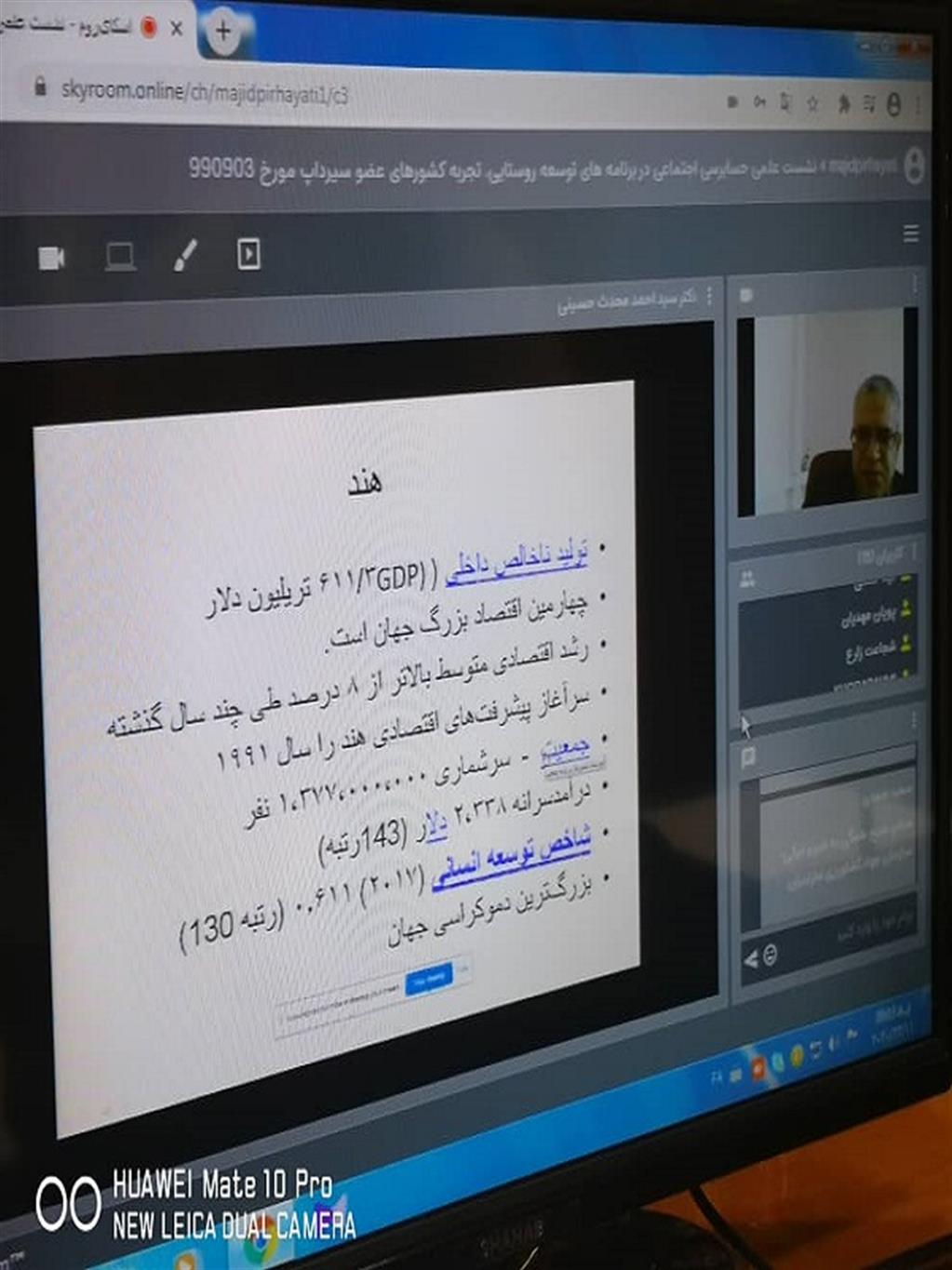 نشست علمی ارائه دستاوردهای حاصل از شرکت در دوره‌های بین‌المللی  با عنوان «حسابرسی اجتماعی در برنامه های توسعه روستایی، تجربه کشورهای عضو سیرداپ » با ارائه جناب آقای دکتر سید احمد محدث حسینی عضو هیات علمی محترم مرکز تحقیقات و آموزش کشاورزی استان خراسان رضوی در تاریخ 3 آذر ماه 1399 از ساعت 9 الی 11 و با حضور جمعی از پژوهشگران موسسه و پژوهشگران و کارشناسان دستگاه‏ های مرتبط وزارت جهادکشاورزی به صورت مجازی در موسسه برگزار شد. این نشست حاصل تجربه شرکت در یک دوره آموزشی با همین عنوان در فرودین 1398 بود که بطور مشترک توسط «مرکز توسعه روستایی یکپارچه برای آسیا و اقیانوسیه(CIRDAP)» و «موسسه ملی توسعه روستایی و پانجایاتی راج هندوستانNIRD&PR» به مدت 10 روز در شهر «حیدرآباد» کشور هندوستان برگزار شد. در این دوره نمایندگانی از کشورهای عضو سیرداپ شامل  ایران، افغانستان، هندوستان، نپال، مالزی، اندونزی، لائوس، بنگلادش، تایلند، فیلیپین، سریلانکا، میانمار ، ویتنام و فیجی حضور داشتند. هدف از برگزاری این دوره آشنایی با حسابرسی اجتماعی در برنامه های توسعه روستایی و ارائه تجربه کشورهای عضو سیرداپ در این‌خصوص بود. همچنین شرکت‏کنندگان در این دوره ضمن مطرح نمودن مسایل و مشکلات، تجربیات خود را در‌زمینه حسابرسی اجتماعی در کشورشان  به اشتراک گذاشتند. مباحث ارائه شده عمدتاً بر محورهای ارائه مسایل توسعه روستایی خصوصا نقش حسابرسی اجتماعی در توسعه روستایی بود. بازدید از طرحهای روستایی در مناطق مختلف کشور هتدوستان از برنامه های دیگر دوره بود.
