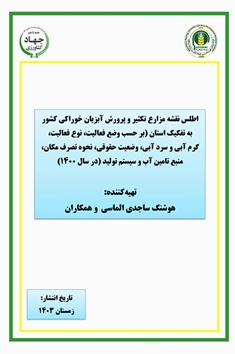 اطلس نقشه مزارع تکثیر و پرورش آبزیان خوراکی کشور به تفکیک استان(بر حسب وضع فعالیت، نوع فعالیت، گرم آبی و سرد آبی، وضعیت حقوقی، نحوه تصرف مکان، منبع تأمین آب و سیستم تولید در سال ۱۴۰۰)