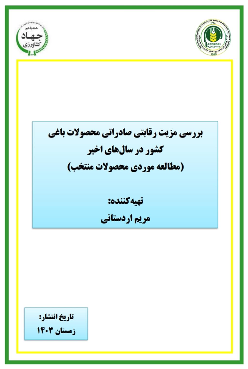 بررسی مزیت رقابتی صادراتی محصولات باغی کشور در سال های اخیر (مطالعه موردی محصولات منتخب )