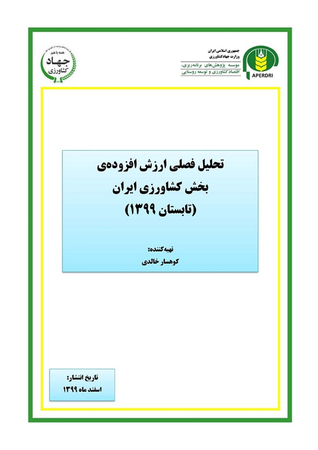 تحلیل فصلی ارزش افزوده بخش کشاورزی ایران(تابستان ۱۳۹۹)