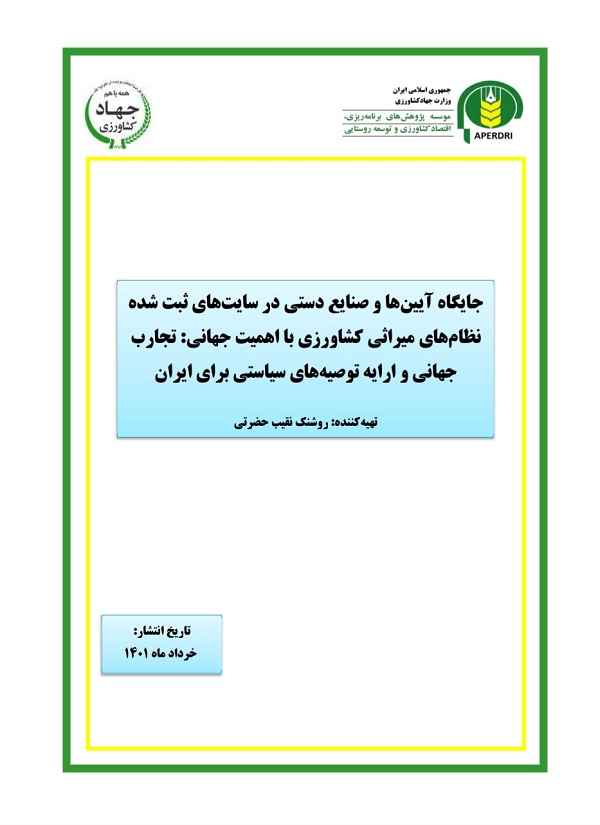 جایگاه آیین ها و صنایع دستی درسایت های ثبت شده نظام های میراثی کشاورزی با اهمیت جهانی تجارب جهانی و ارایه توصیه های سیاستی برای ایران