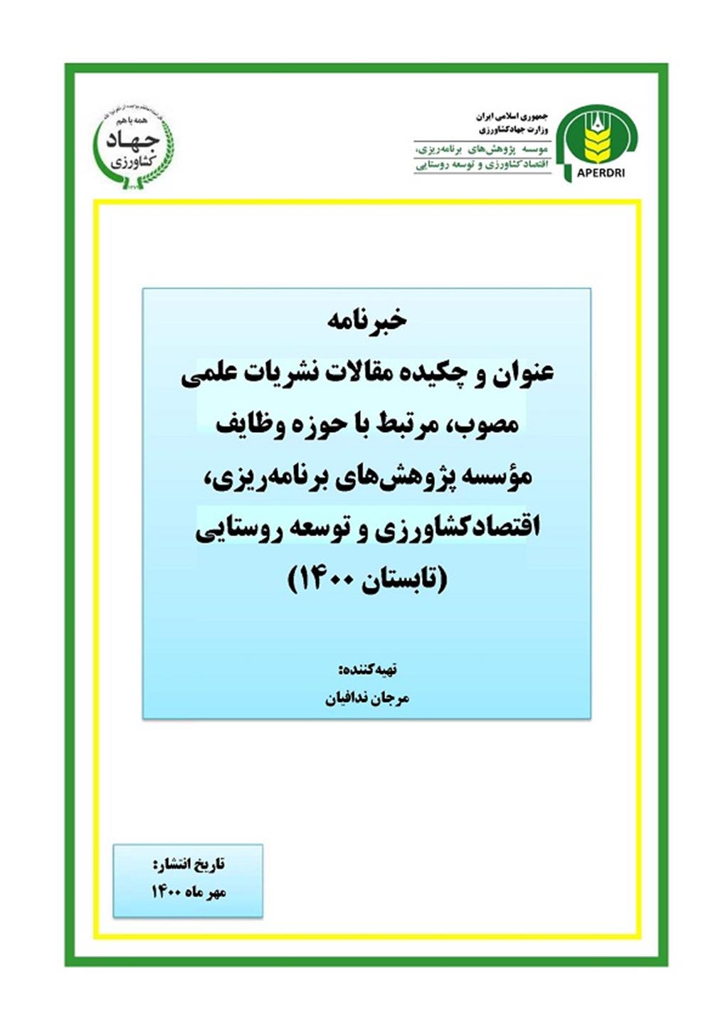 خبرنامه عنوان و چکیده مقالات نشریات علمی مصوب، مرتبط با حوزه وظایف موسسه پژوهشهای برنامه ریزی، اقتصاد کشاورزی و توسعه روستایی (تابستان ۱۴۰۰)