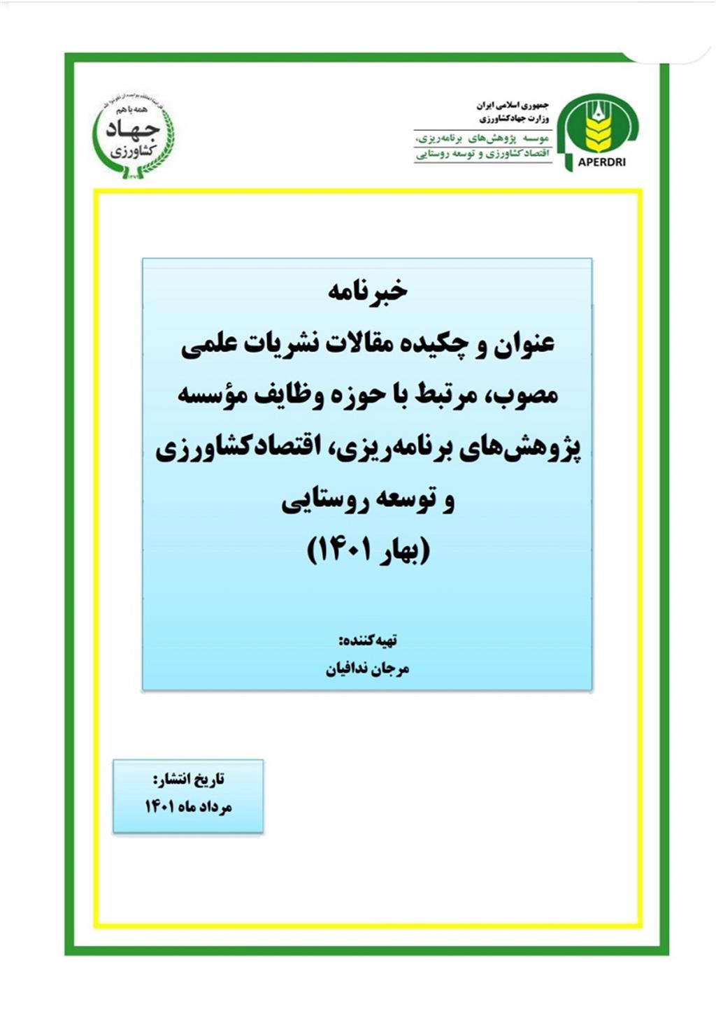 خبرنامه عنوان و چکیده مقالات نشریات علمی مصوب، مرتبط با حوزه وظایف موسسه پژوهش های برنامه ریزی، اقتصاد کشاورزی و توسعه روستایی (بهار ۱۴۰۱)