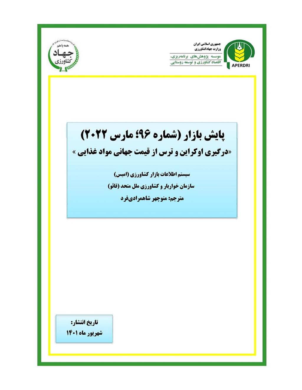 خلاصه گزارش پایش بازار (شماره ۹۶ ، مارس ۲۰۲۲ )« درگیری اوکراین و ترس از قیمت جهانی مواد غذایی »