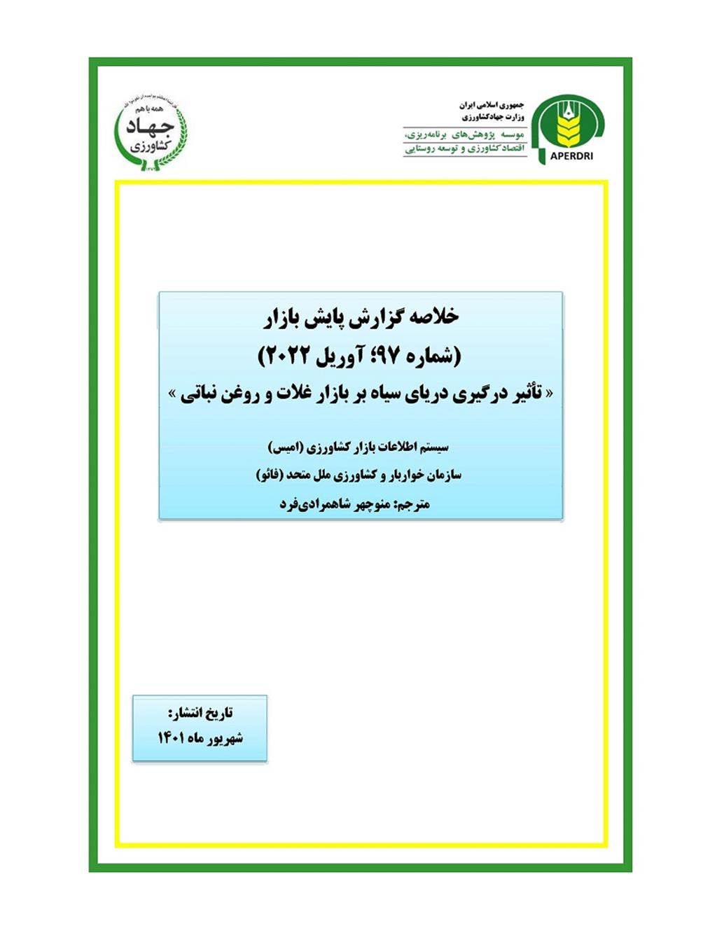خلاصه گزارش پایش بازار (شماره ۹۷ ، آوریل ۲۰۲۲) «تأثیر درگیری دریای سیاه بر بازار غلات و روغن نباتی»