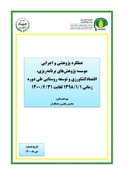 عملکرد پژوهشی و اجرایی موسسه پژوهش های برنامه ریزی،اقتصاد کشاورزی و توسعه روستایی طی دوره زمانی ۱۳۹۸/۱/۱ لغایت ۱۴۰۰/۶/۳۱