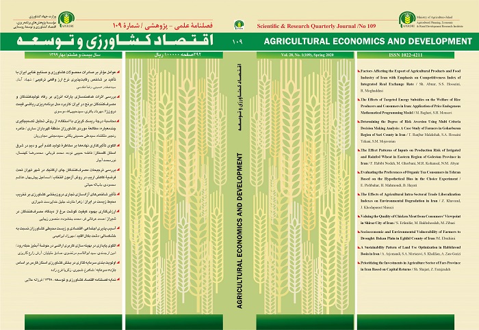 فصلنامه اقتصاد کشاورزی و توسعه شماره ۱۰۹(بهار ۱۳۹۹)