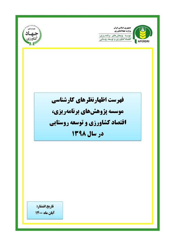فهرست اظهار نظرهای کارشناسی موسسه پژوهش های برنامه ریزی ،اقتصاد کشاورزی و توسعه روستایی در سال ۱۳۹۸