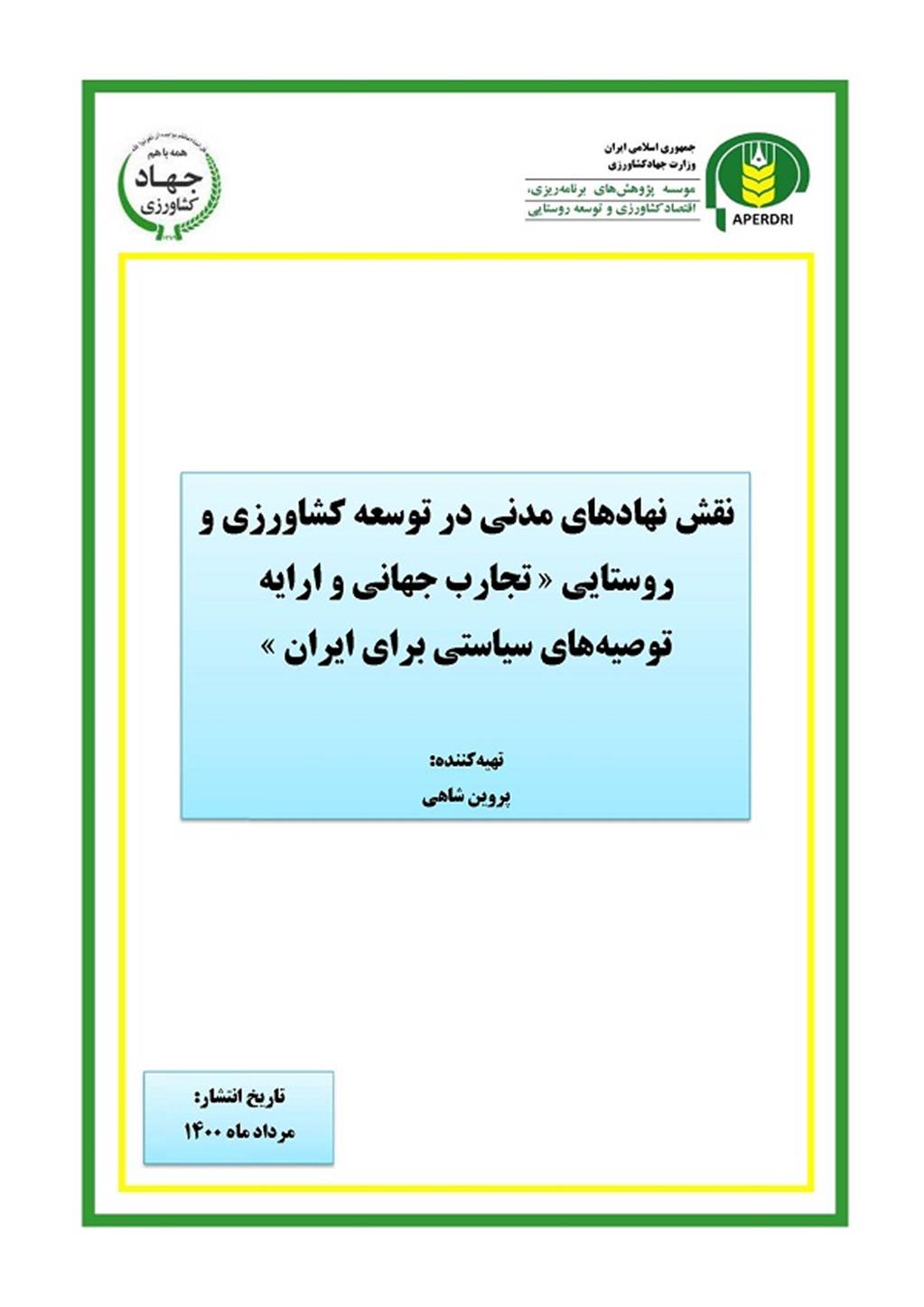 نقش نهادهای مدنی در توسعه کشاورزی و روستایی تجارب جهانی و ارایه توصیه های سیاستی برای ایران
