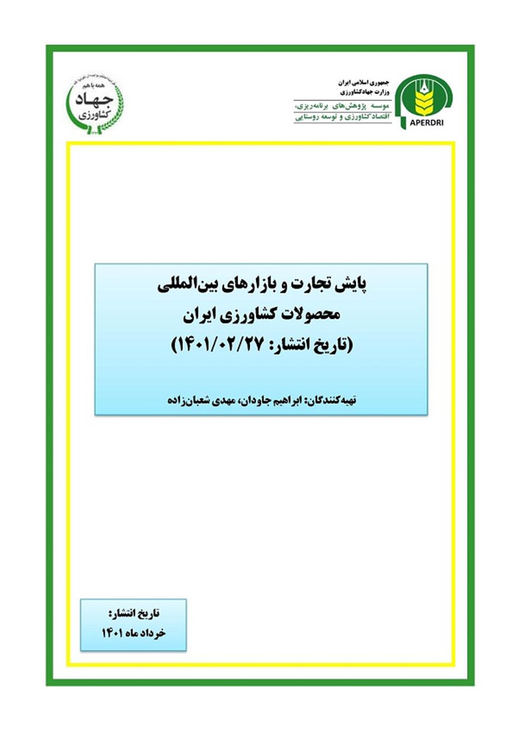 پایش تجارت و بازارهای بین المللی محصولات کشاورزی ایران (تاریخ انتشار ۱۴۰۱/۰۲/۲۷)