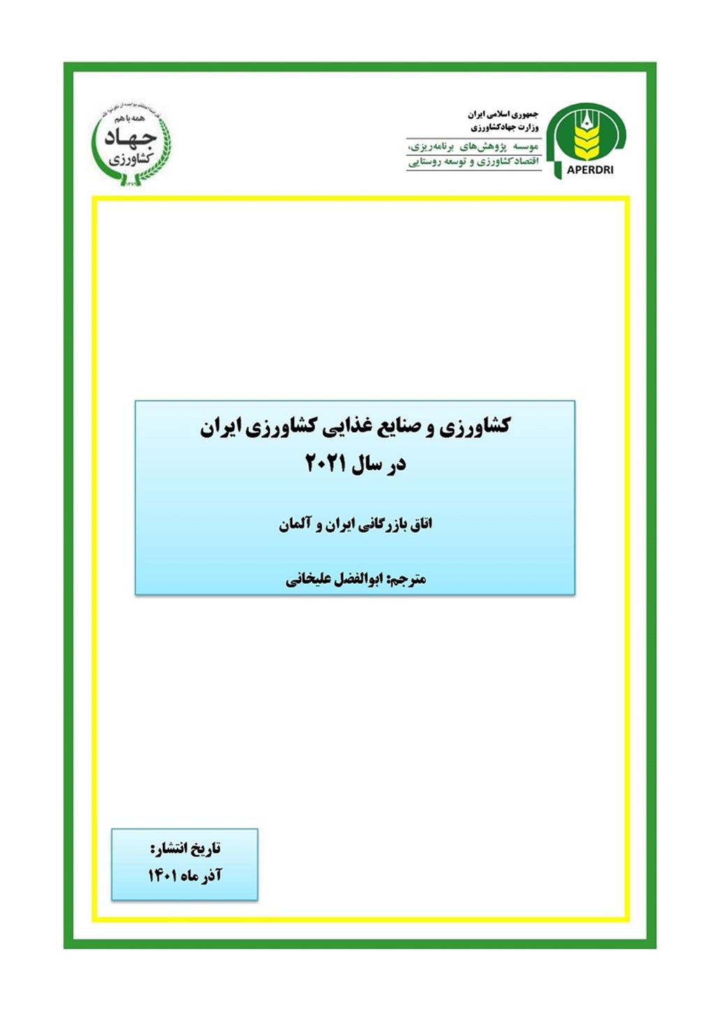 کشاورزی و صنایع غذایی کشاورزی ایران در سال ۲۰۲۱-اتاق بازرگانی ایران و آلمان