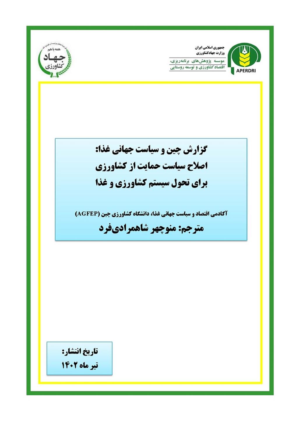 گزارش چین و سیاست جهانی غذا:اصلاح سیاست حمایت از کشاورزی برای تحول سیستم کشاورزی و غذا