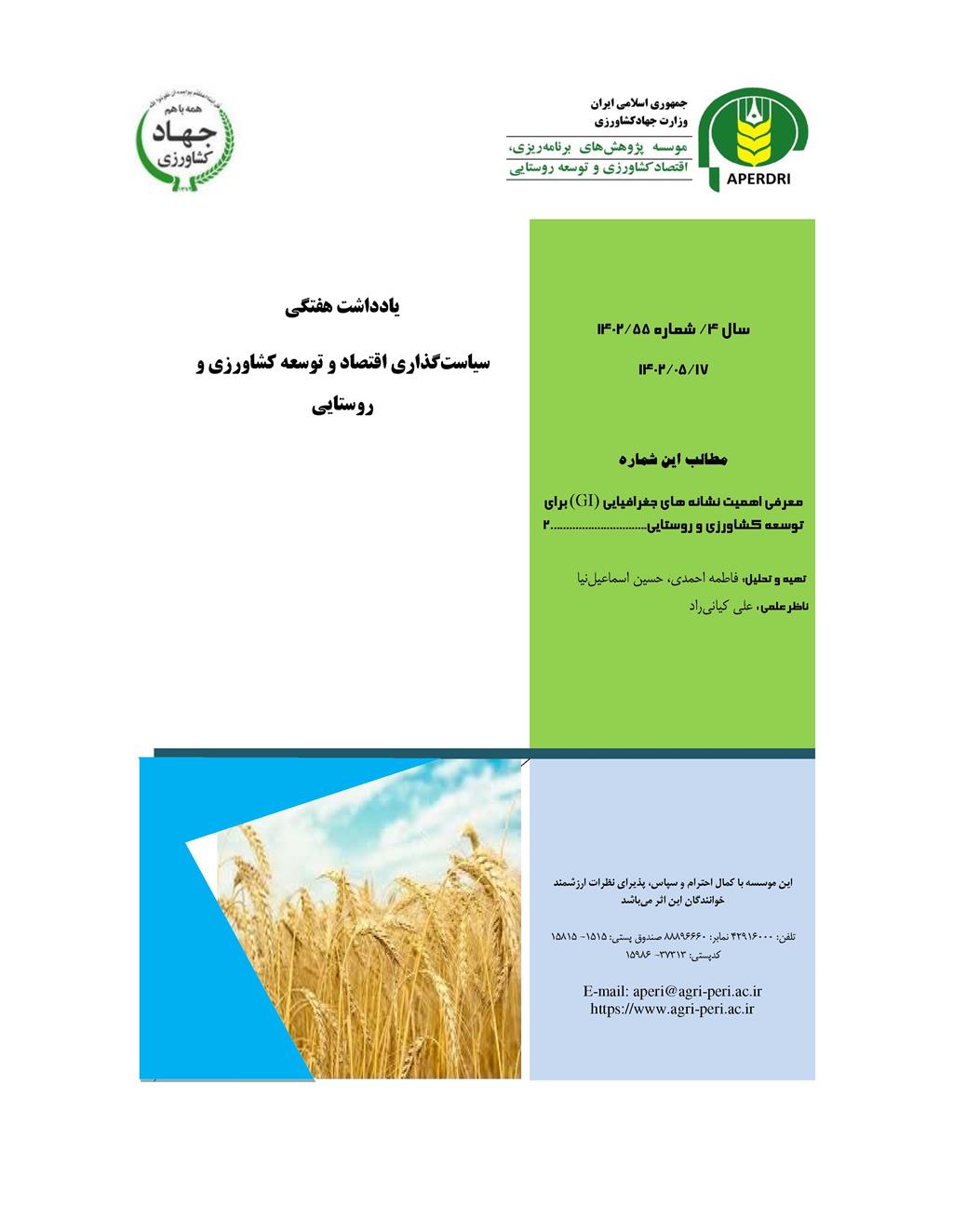 یادداشت هفتگی سیاست‌گذاری اقتصاد و توسعه کشاورزی و روستایی (شماره ۵۵) با موضوع «معرفی اهمیت نشانه های جغرافیایی (GI) برای توسعه کشاورزی و روستایی»