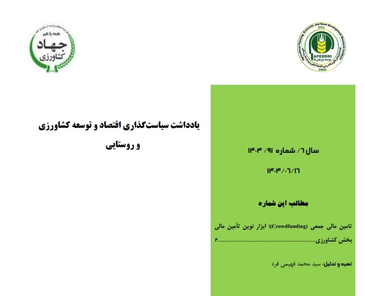 یادداشت سیاست گذاری اقتصاد و توسعه کشاورزی و روستایی(شماره 91) با موضوع « تامین مالی جمعی (Crowdfunding) ابزار نوین تامین مالی بخش کشاورزی »