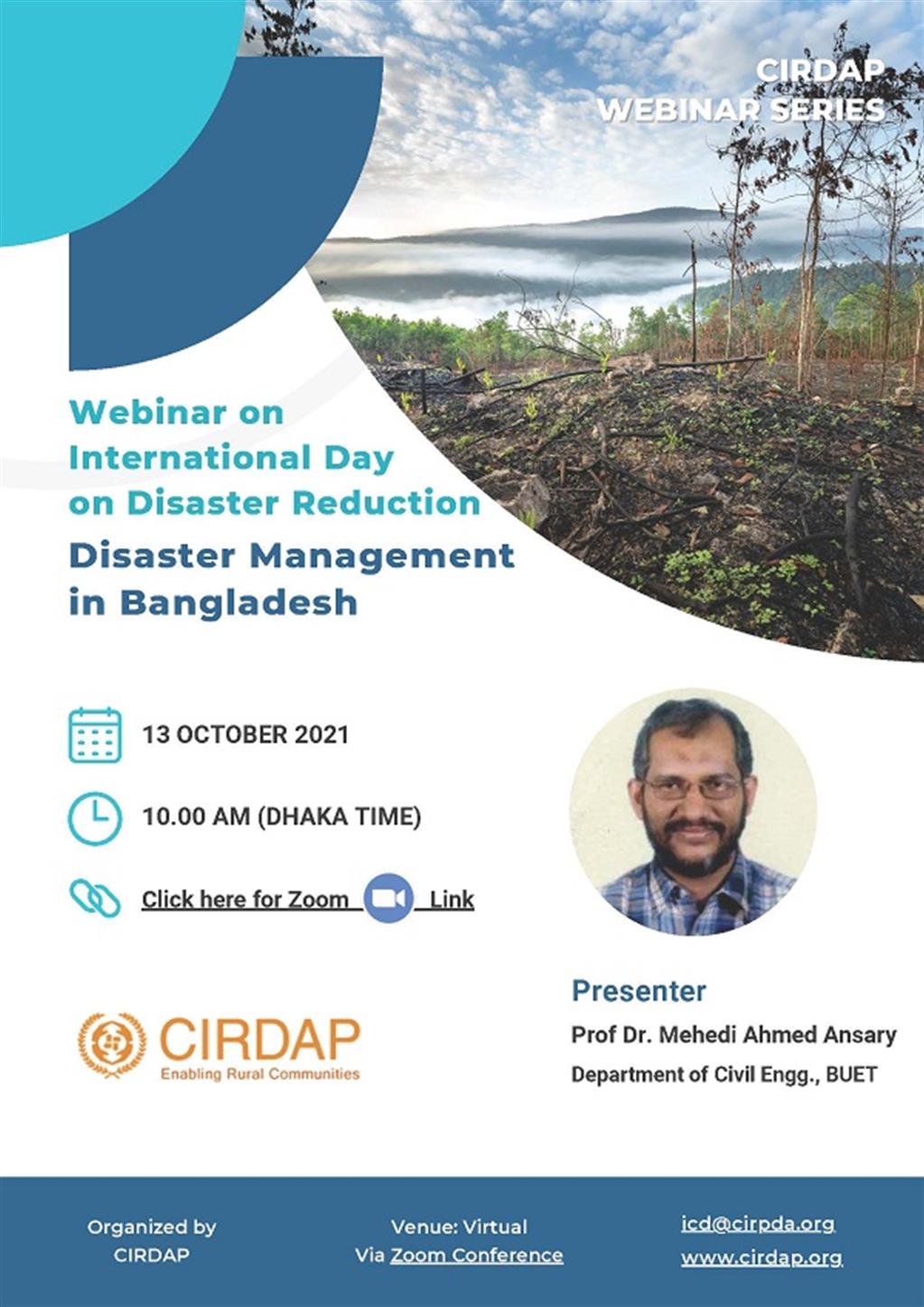 اطلاعیه مرکز توسعه روستایی یکپارچه برای آسیا و اقیانوسیه(CIRDAP) در خصوص برگزاری وبینار با عنوان«مدیریت بلایای طبیعی در بنگلادش»