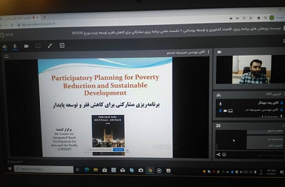 نشست علمی ارائه دستاوردهای حاصل از شرکت در دورههای بینالمللی با عنوان « برنامه ریزی مشارکتی برای کاهش فقر و توسعه پایدار » با ارائه جناب آقای مهندس حمیدرضا حسنلو از اداره کل منابع طبیعی استان زنجان در تاریخ 16 دی ماه 1399 از ساعت 9 الی 11 و با حضور جمعی از پژوهشگران موسسه و پژوهشگران و کارشناسان دستگاه های مرتبط وزارت جهادکشاورزی به صورت مجازی در موسسه برگزار شد. این نشست حاصل تجربه شرکت در یک دوره آموزشی با همین عنوان در اسفندماه 1397 بود که بطور مشترک توسط «مرکز توسعه روستایی یکپارچه برای آسیا و اقیانوسیه(CIRDAP)» و «موسسه ملی توسعه روستایی و پانجایاتی راج هندوستانNIRD&PR» به مدت 25 روز در شهر «حیدرآباد» کشور هندوستان برگزار شد.