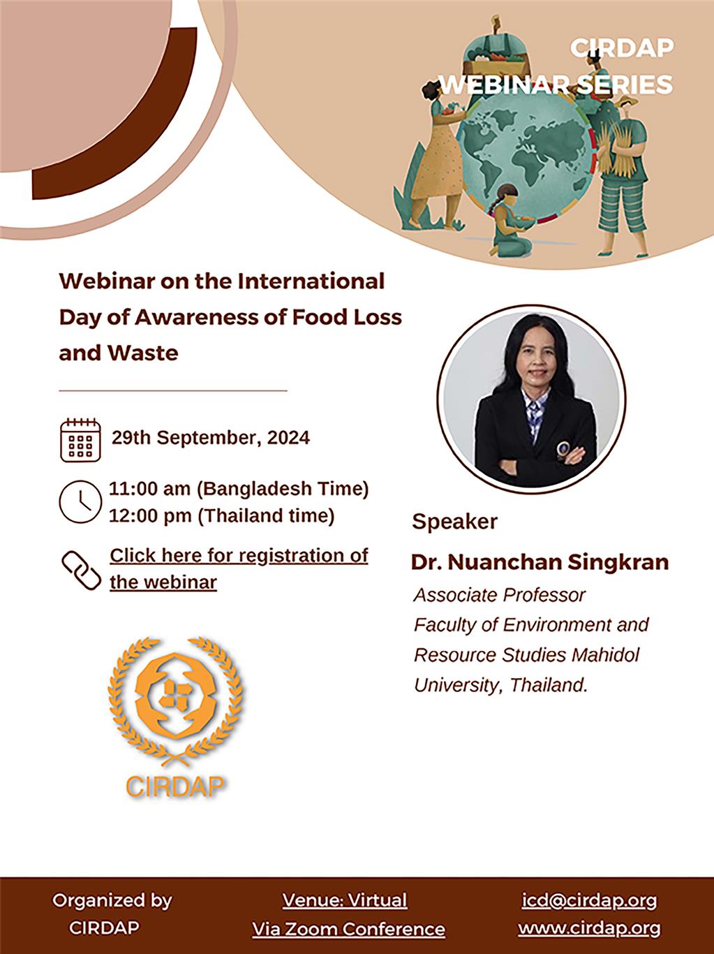 موسسه پژوهش‌های برنامه‌ریزی، اقتصادکشاورزی و توسعه روستایی، موسسه پژوهشی رابط با مرکز توسعه روستایی یکپارچه برای آسیا و اقیانوسیه CIRDAP، دعوت به نشست علمی مجازی تحت عنوان: "روز بین‌المللی آگاهی از هدر رفت و ضایعات مواد غذایی" می‌نماید.