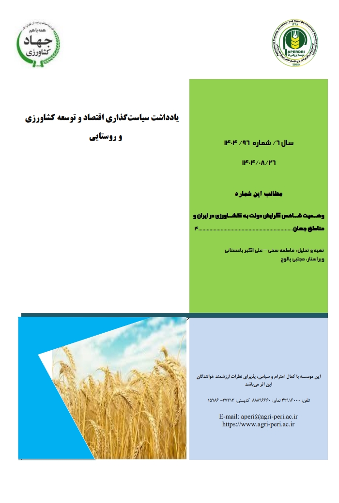 یادداشت سیاست‌گذاری اقتصاد و توسعه کشاورزی و روستایی (شماره96) با موضوع «وضعیت شاخص گرایش دولت به کشاورزی در ایران و مناطق جهان»