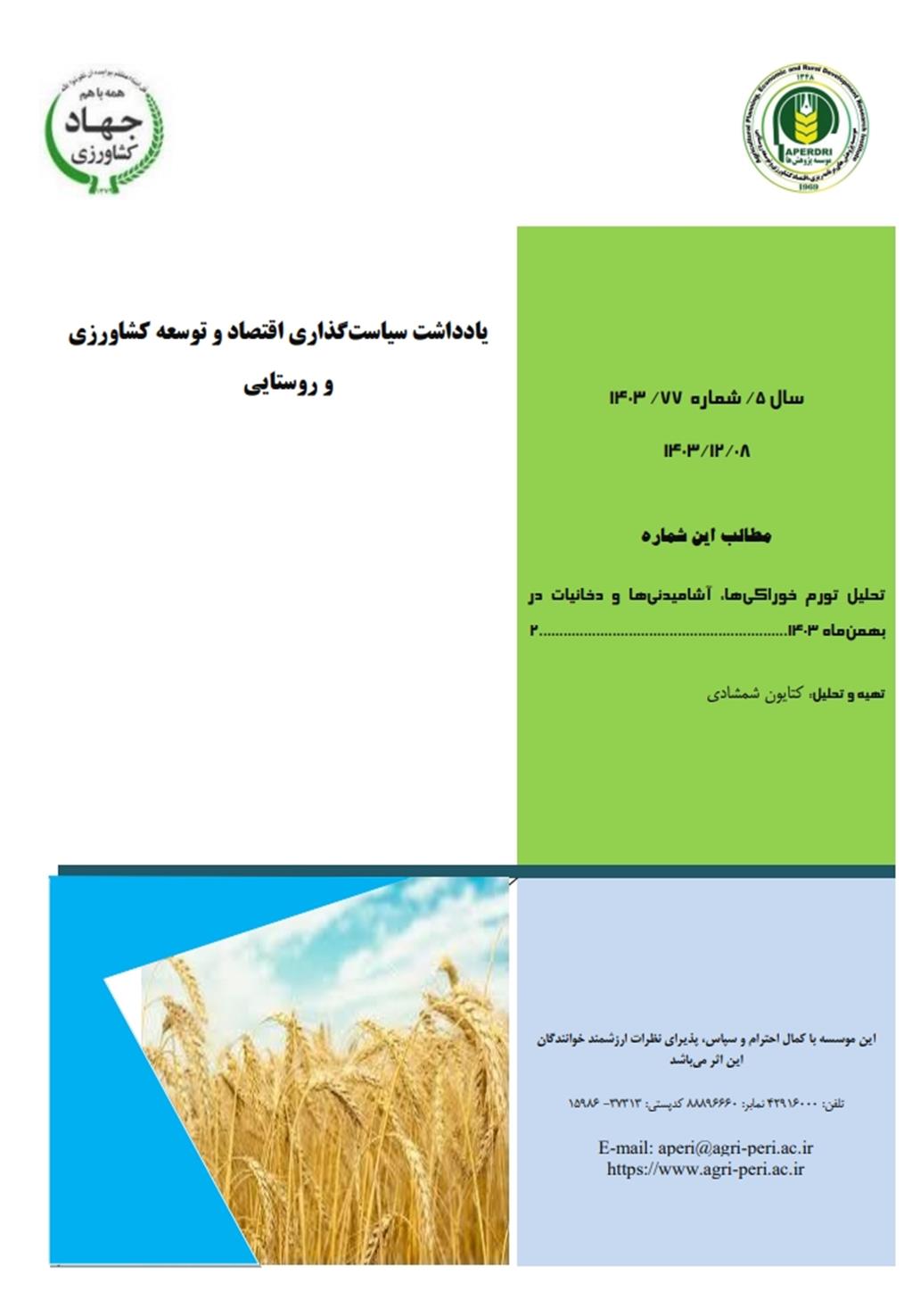 یادداشت سیاست گذاری اقتصاد و توسعه کشاورزی و روستایی (شماره ۷۷) با موضوع، «تحلیل تورم خوراکی ها،آشامیدنی ها و دخانیات در بهمن ماه ۱۴۰۳»