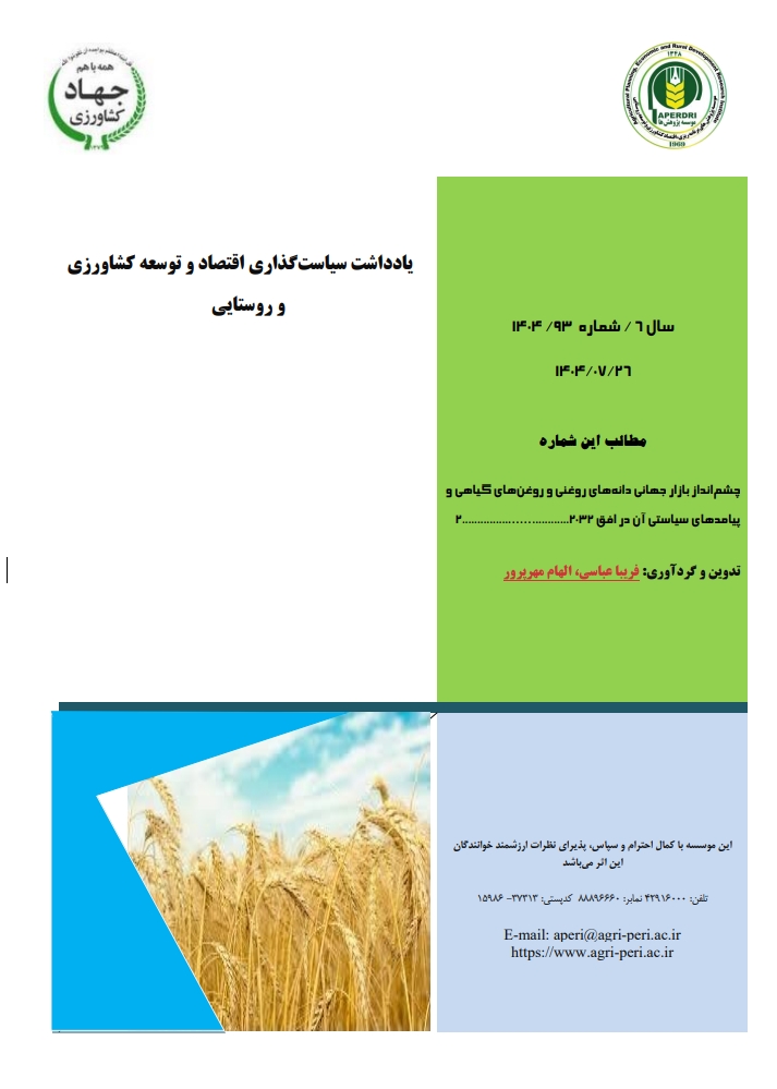 یادداشت سیاستگذاری اقتصاد و توسعه کشاورزی و روستایی (شماره ۹3)با موضوع « چشم انداز بازار جهانی دانههای روغنی و روغنهای گیاهی و پیامدهای سیاستی آن در افق 2032 »