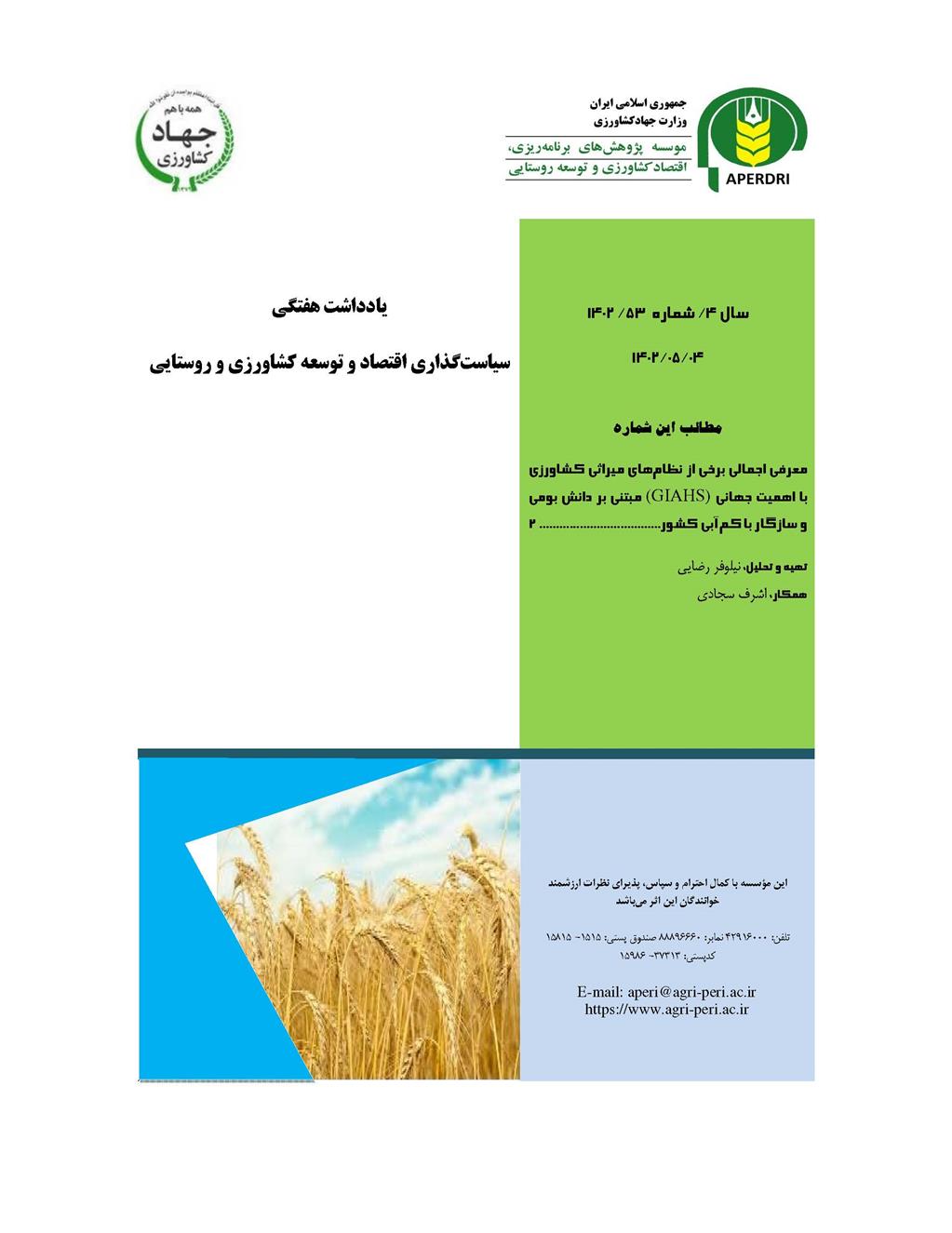 یادداشت های تخصصی موسسه شماره ۵۳ - با عنوان «معرفی اجمالی برخی از نظام‌های میراثی کشاورزی با اهمیت جهانی (GIAHS) مبتنی بر دانش بومی و سازگار با کم‌آبی کشور»