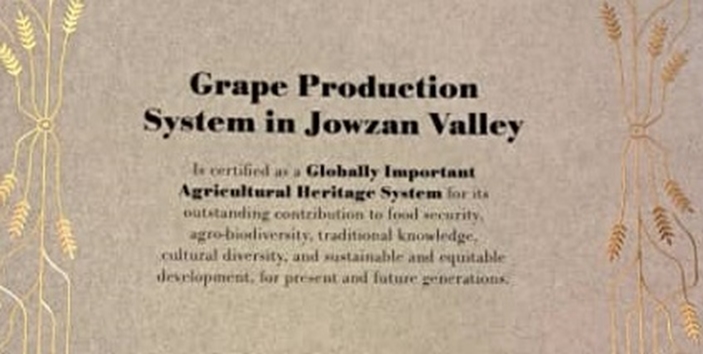 گواهی های ثبت جهانی دونظام میراثی کشاورزی مهم جهانی جمهوری اسلامی ایران توسط مدیرکل فائو اعطا شد