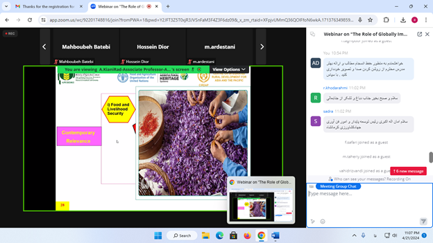 برگزاری نشست علمی مجازی با عنوان: «نقش نظامهای میراثی کشاورزی مهم جهانی(GIAHS) در توسعه گردشگری پایدار کشاورزی، روستایی و غذایی»