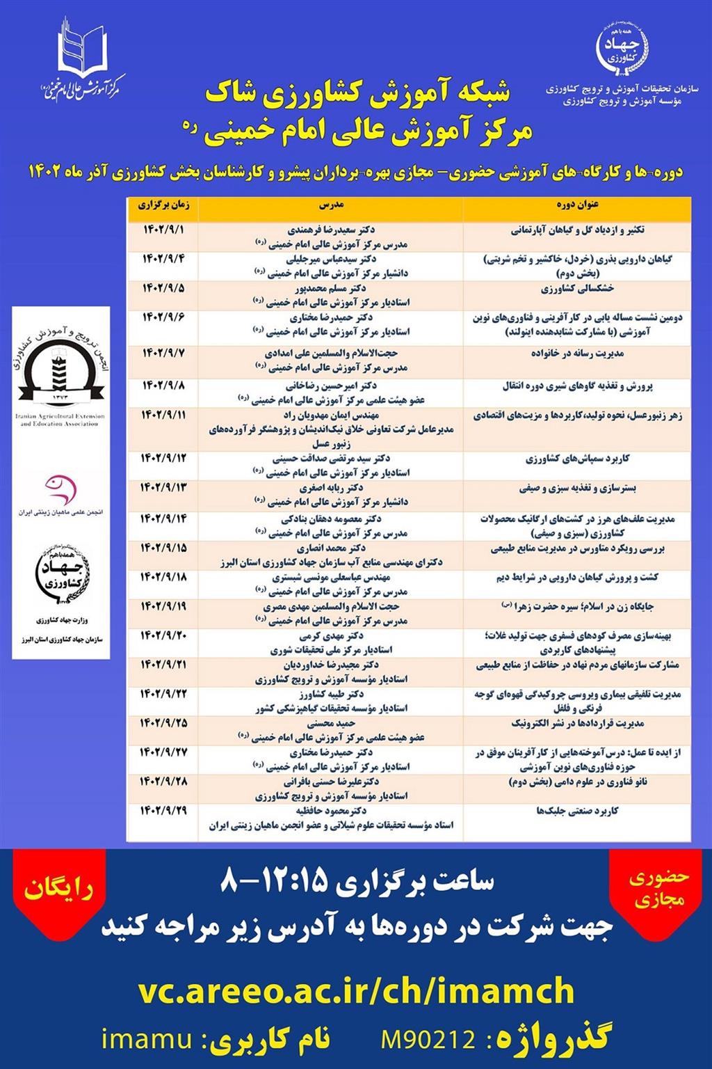 دوره ها و کارگاه های آموزشی حضوری-مجازی بهره برداران پیشرو و کارشناسان بخش کشاورزی آذر ماه 1402
