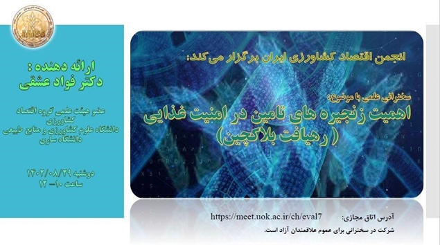 سخنرانی علمی با موضوع  :اهمیت زنجیره های تامین در امنیت غذایی (رهیافت بلاکچین)