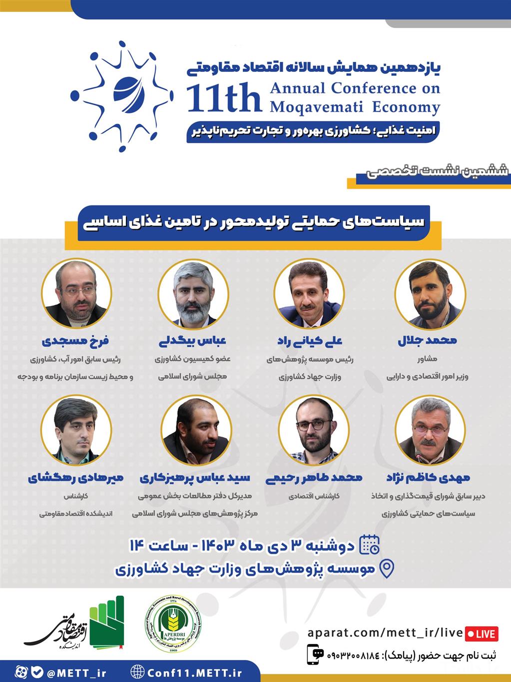 ششمین نشست تخصصی همایش سالانه اقتصاد مقاومتی با موضوع « آسیب شناسی سیاستهای حمایتی غذا و کشاورزی»